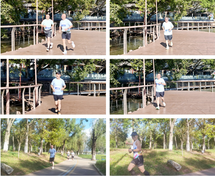 10月17日7:00时,比赛拉开帷幕。集合整队后,在2名领操员带领下,全体参赛队员进行了极具活力的跑前热身操运动,跑步前系列准备活动就绪。
